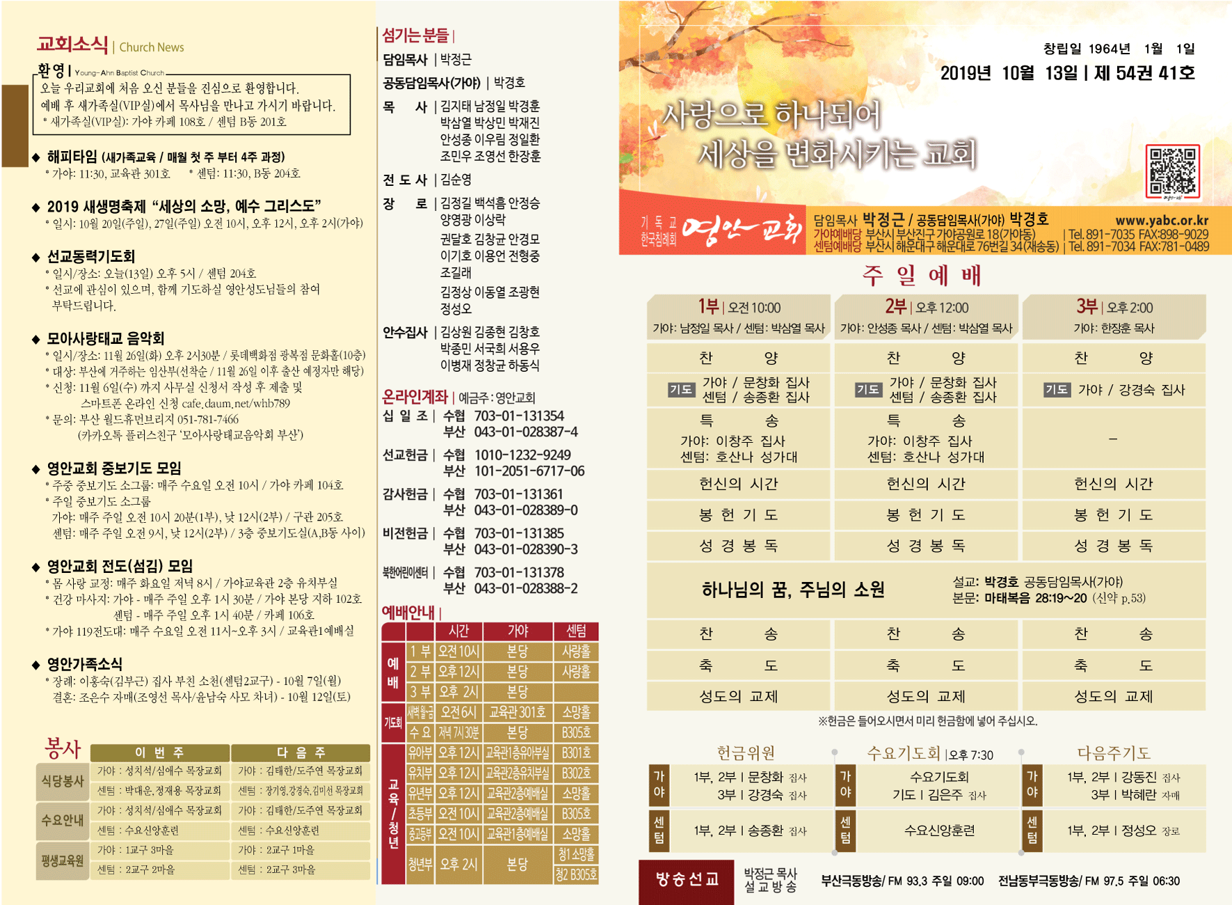 2019년 10월 13일 주보 페이지 정보 작성자 관리지기 작성일19-10-12 12:38 조회8,403회 댓글0건 관련링크 목록 본문 [2019년 10월 13일 주보] 댓글목록 등록된 댓글이 없습니다. 목록