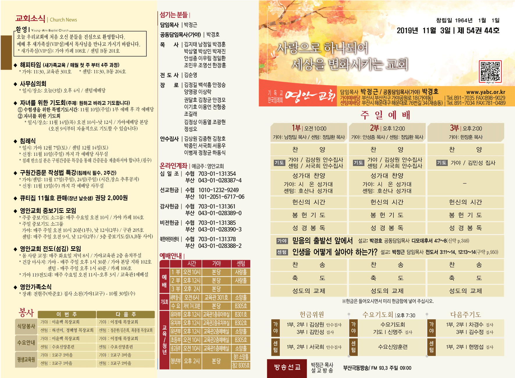 2019년 11월 3일 주보 페이지 정보 작성자 관리지기 작성일19-11-02 11:49 조회7,900회 댓글0건 관련링크 목록 본문 [2019년 11월 3일 주보] 댓글목록 등록된 댓글이 없습니다. 목록