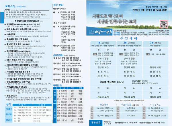 2019년 7월 21일 주보 페이지 정보 작성자 관리지기 작성일19-07-20 11:59 조회8,403회 댓글0건 관련링크 목록 본문 [2019년 7월 21일 주보] 댓글목록 등록된 댓글이 없습니다. 목록
