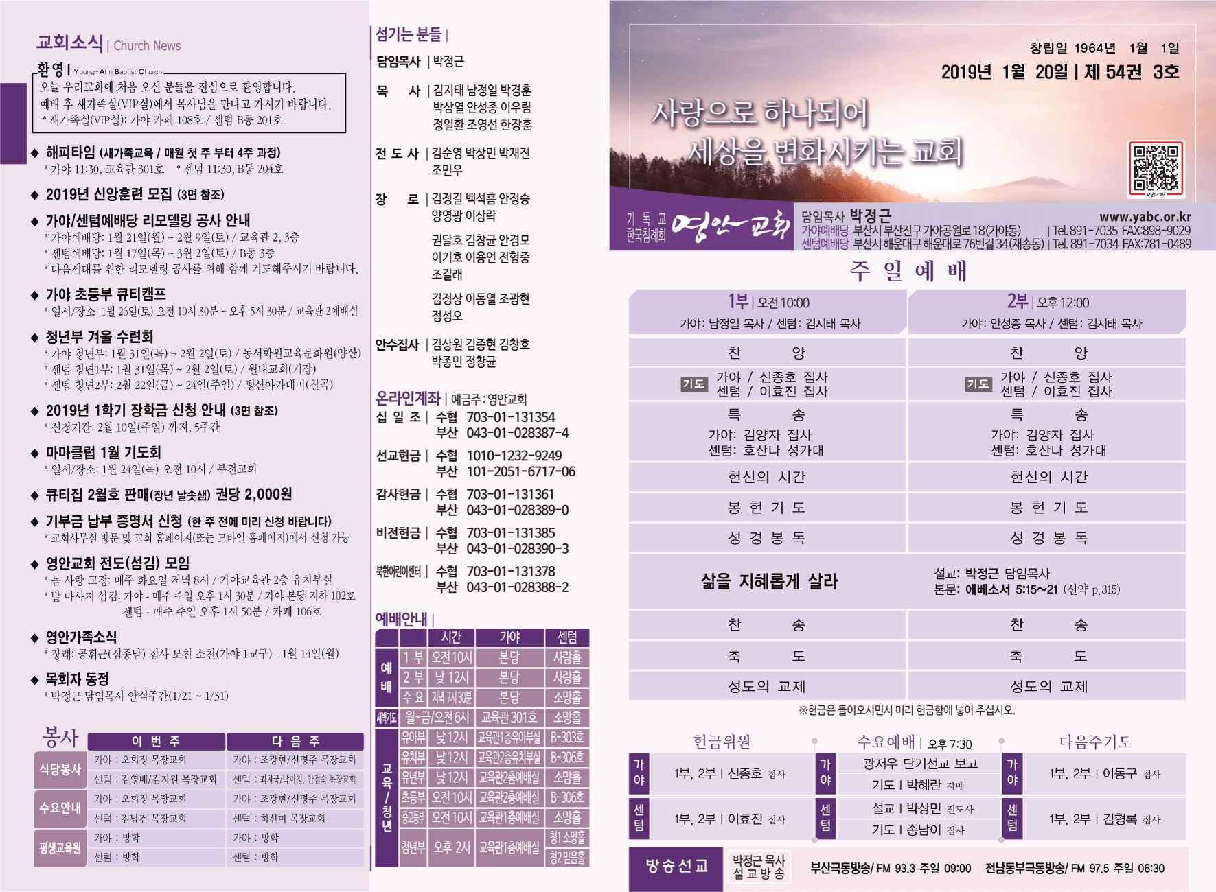2019년 1월 20일 주보 페이지 정보 작성자 관리지기 작성일19-01-19 12:06 조회9,371회 댓글0건 관련링크 목록 본문 [2019년 1월 20일 주보] 댓글목록 등록된 댓글이 없습니다. 목록
