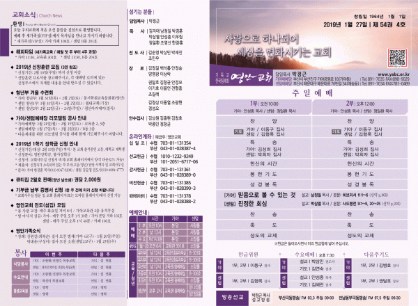 2019년 1월 27일 주보 페이지 정보 작성자 관리지기 작성일19-01-26 11:54 조회9,239회 댓글0건 관련링크 목록 본문 [2019년 1월 27일 주보] 댓글목록 등록된 댓글이 없습니다. 목록