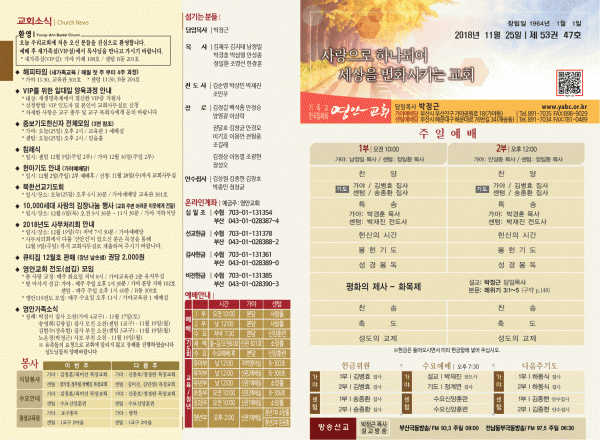 2018년 11월 25일 주보 페이지 정보 작성자 관리지기 작성일18-11-24 12:05 조회9,356회 댓글0건 관련링크 목록 본문 [2018년 11월 25일 주보] 댓글목록 등록된 댓글이 없습니다. 목록