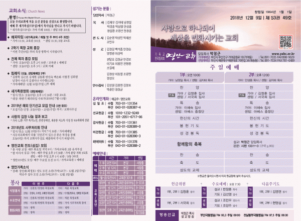 2018년 12월 9일 주보 페이지 정보 작성자 관리지기 작성일18-12-08 12:13 조회9,257회 댓글0건 관련링크 목록 본문 [2018년 12월 9일 주보] 댓글목록 등록된 댓글이 없습니다. 목록