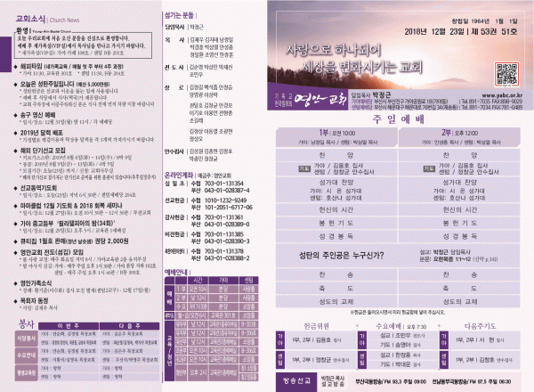 2018년 12월 23일 주보 페이지 정보 작성자 관리지기 작성일18-12-22 12:09 조회9,426회 댓글0건 관련링크 목록 본문 [2018년 12월 23일 주보] 댓글목록 등록된 댓글이 없습니다. 목록
