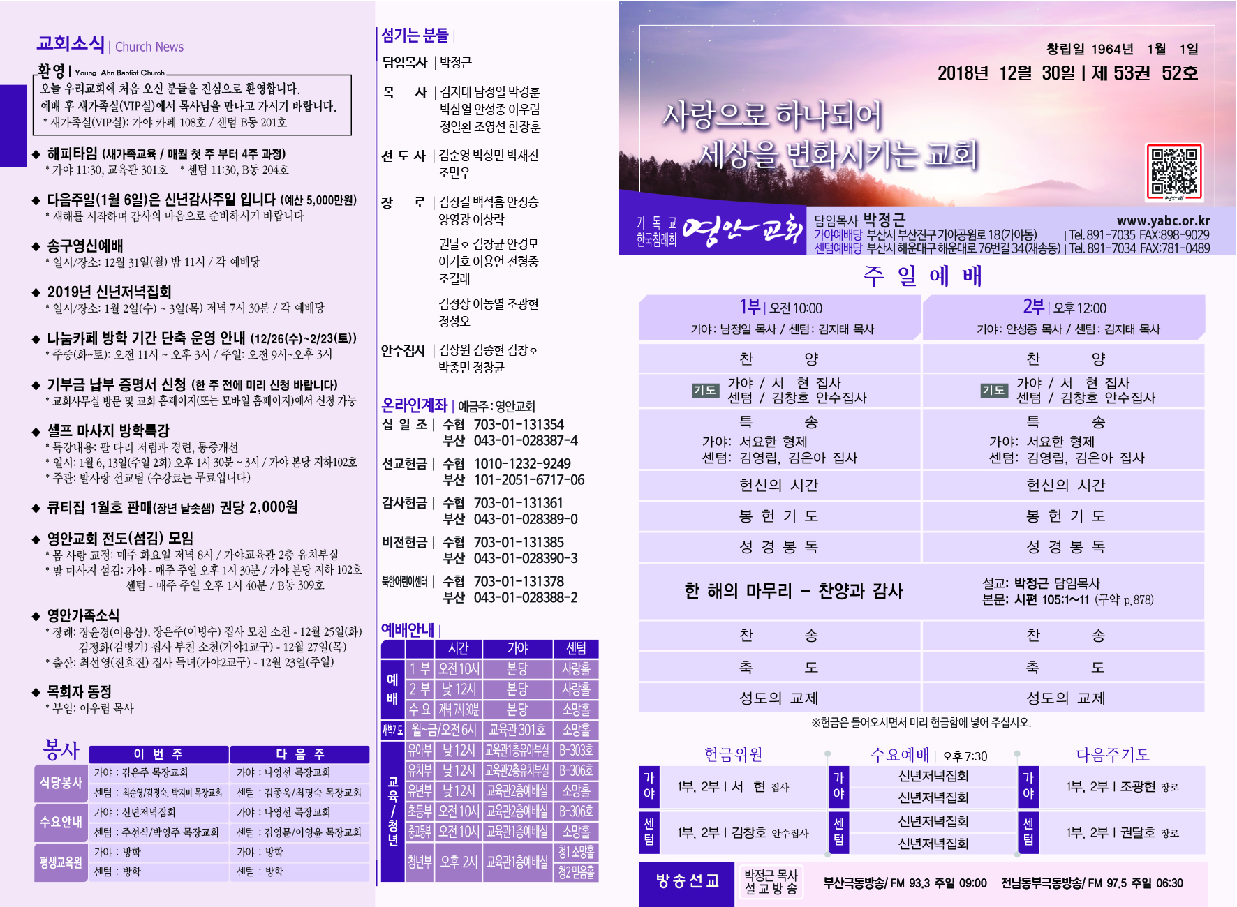 2018년 12월 30일 주보 페이지 정보 작성자 관리지기 작성일18-12-29 11:45 조회9,732회 댓글0건 관련링크 목록 본문 2018년 12월 30일 주보 댓글목록 등록된 댓글이 없습니다. 목록