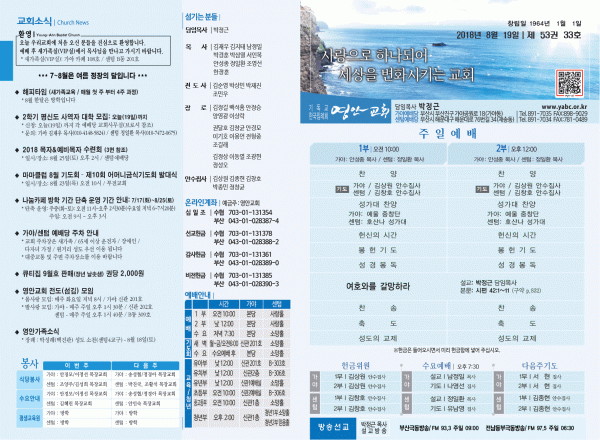 2018년 8월 19일 주보 페이지 정보 작성자 관리지기 작성일18-08-18 12:50 조회15,111회 댓글0건 관련링크 목록 본문 [2018년 8월 19일 주보] 댓글목록 등록된 댓글이 없습니다. 목록