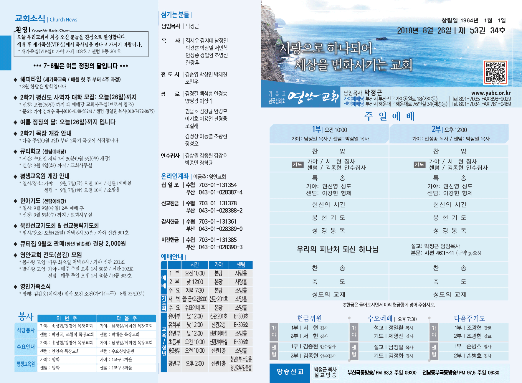 2018년 8월 26일 주보 페이지 정보 작성자 관리지기 작성일18-08-25 12:44 조회10,371회 댓글0건 관련링크 목록 본문 [2018년 8월 26일 주보] 댓글목록 등록된 댓글이 없습니다. 목록