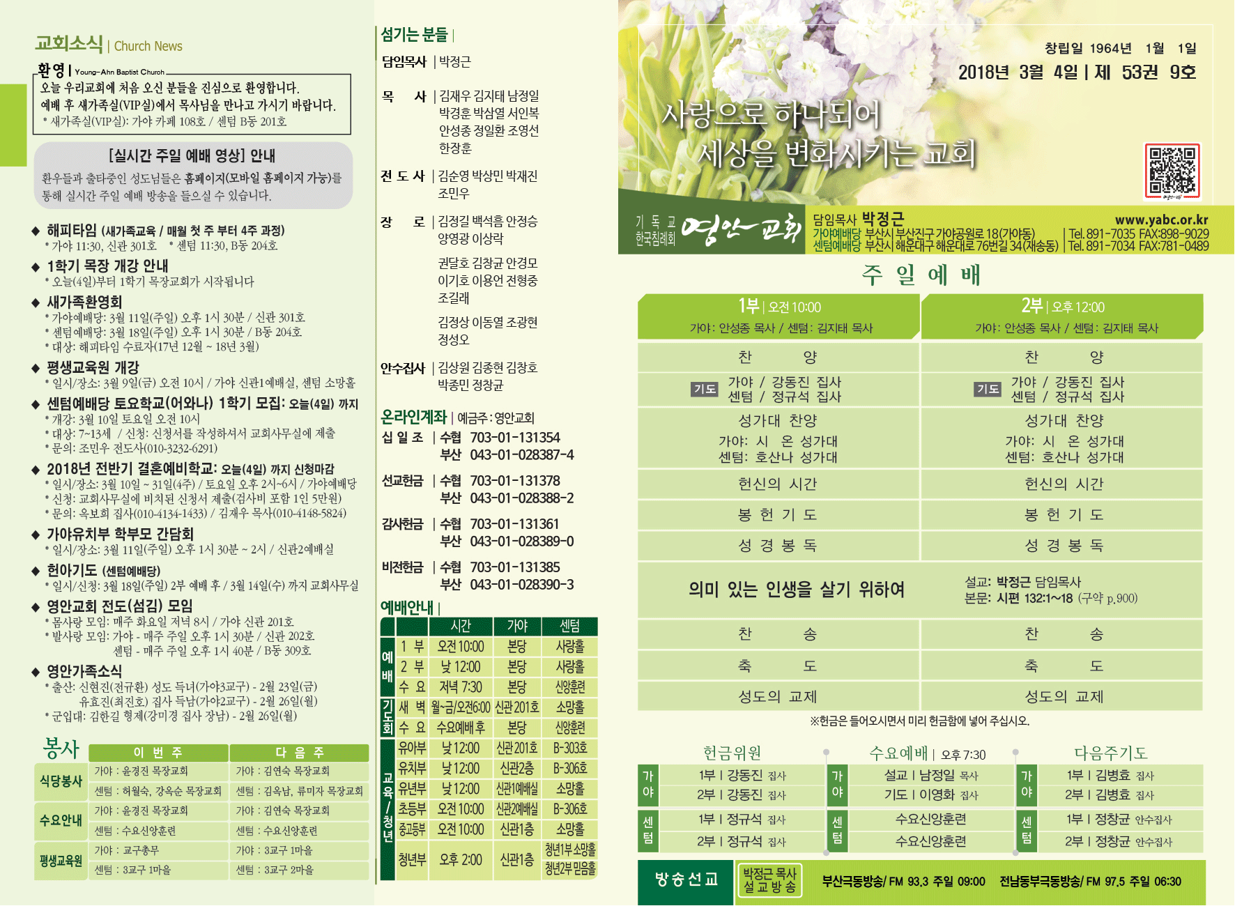 2018년 3월 4일 주보 페이지 정보 작성자 관리지기 작성일18-03-03 13:16 조회10,411회 댓글0건 관련링크 목록 본문 [2018년 3월 4일 주보] 댓글목록 등록된 댓글이 없습니다. 목록