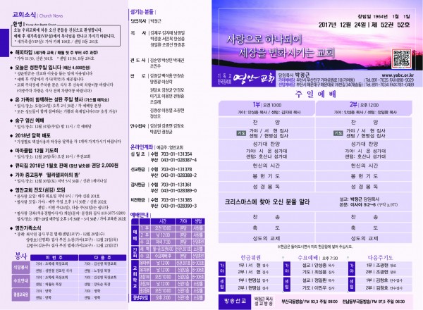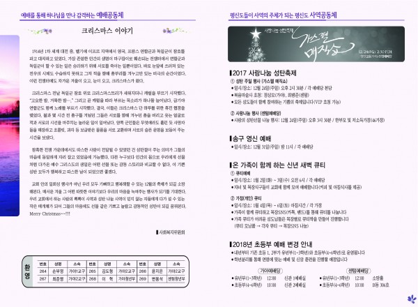 2017년 12월 24일 주보 페이지 정보 작성자 관리지기 작성일17-12-23 12:16 조회14,908회 댓글0건 관련링크 목록 본문 2017년 12월 24일 주보 댓글목록 등록된 댓글이 없습니다. 목록