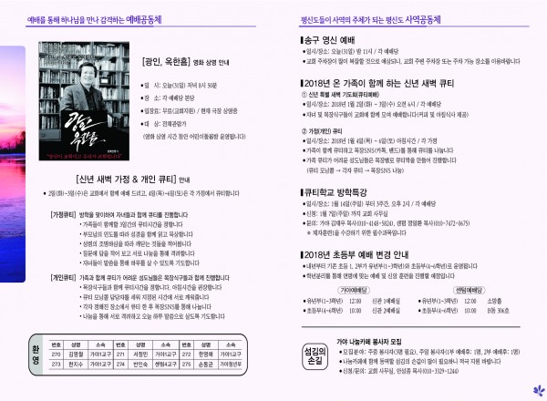 2017년 12월 31일 주보 페이지 정보 작성자 관리지기 작성일17-12-30 12:14 조회14,562회 댓글0건 관련링크 목록 본문 2017년 12월 31일 주보 댓글목록 등록된 댓글이 없습니다. 목록