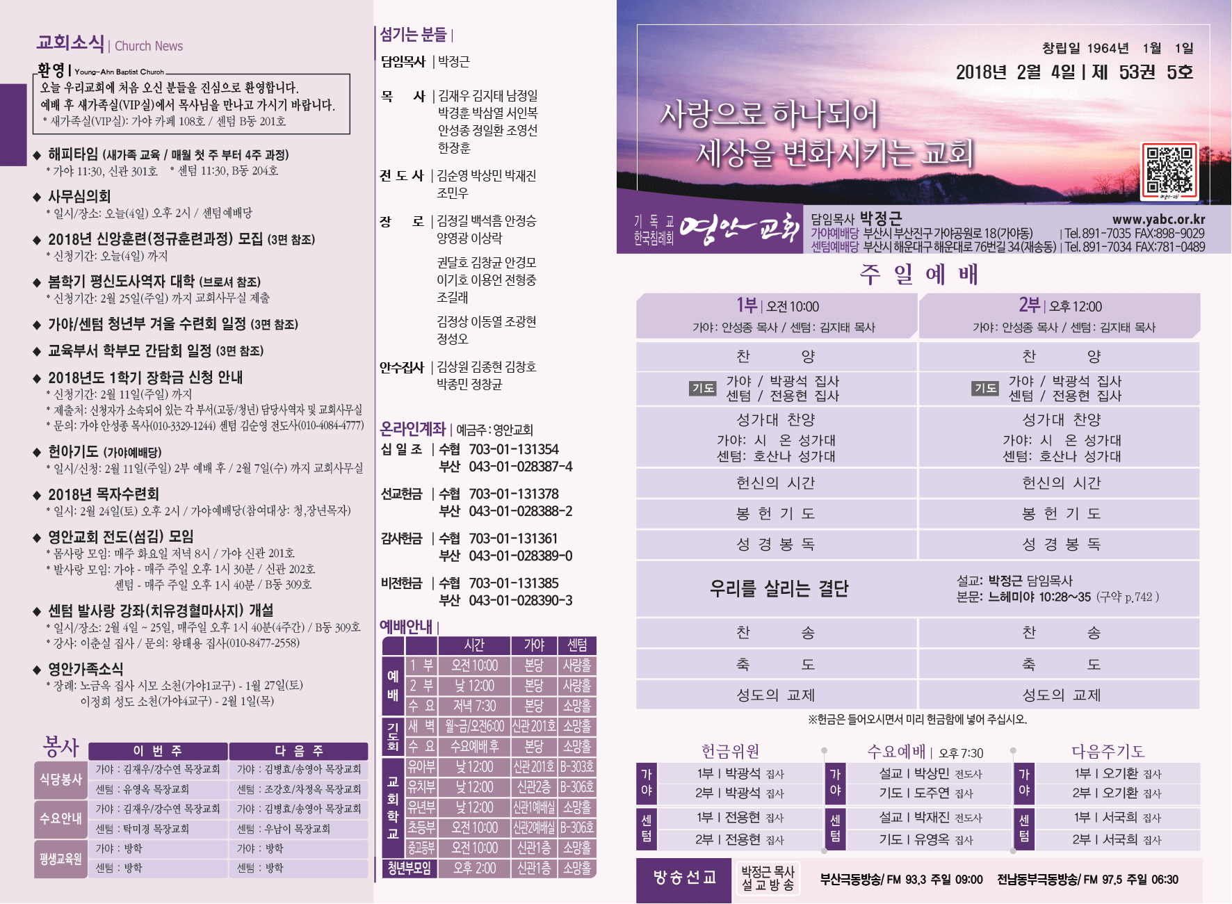 2018년 2월 4일 주보 페이지 정보 작성자 관리지기 작성일18-02-03 12:06 조회13,684회 댓글0건 관련링크 목록 본문 [2018년 2월 4일 주보] 댓글목록 등록된 댓글이 없습니다. 목록