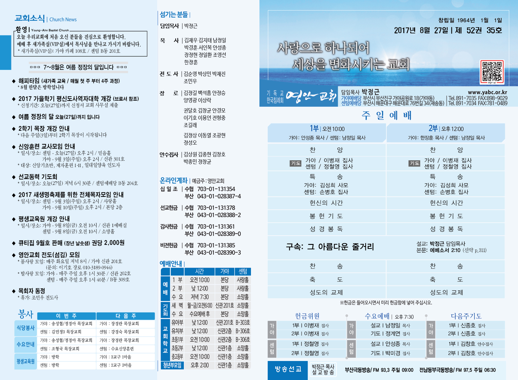 2017년 8월 27일 주보 페이지 정보 작성자 관리지기 작성일17-08-26 11:18 조회13,662회 댓글0건 관련링크 목록 본문 2017년 8월 27일 주보 댓글목록 등록된 댓글이 없습니다. 목록