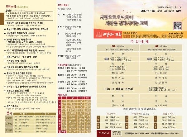 2017년 10월 22일 주보 페이지 정보 작성자 관리지기 작성일17-10-21 11:42 조회14,088회 댓글0건 관련링크 목록 본문 2017년 10월 22일 주보 댓글목록 등록된 댓글이 없습니다. 목록