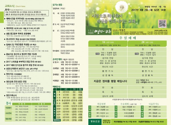 2017년 4월 2일 주보 페이지 정보 작성자 관리지기 작성일17-04-01 13:02 조회13,746회 댓글0건 관련링크 목록 본문 2017년 4월 2일 주보 댓글목록 등록된 댓글이 없습니다. 목록