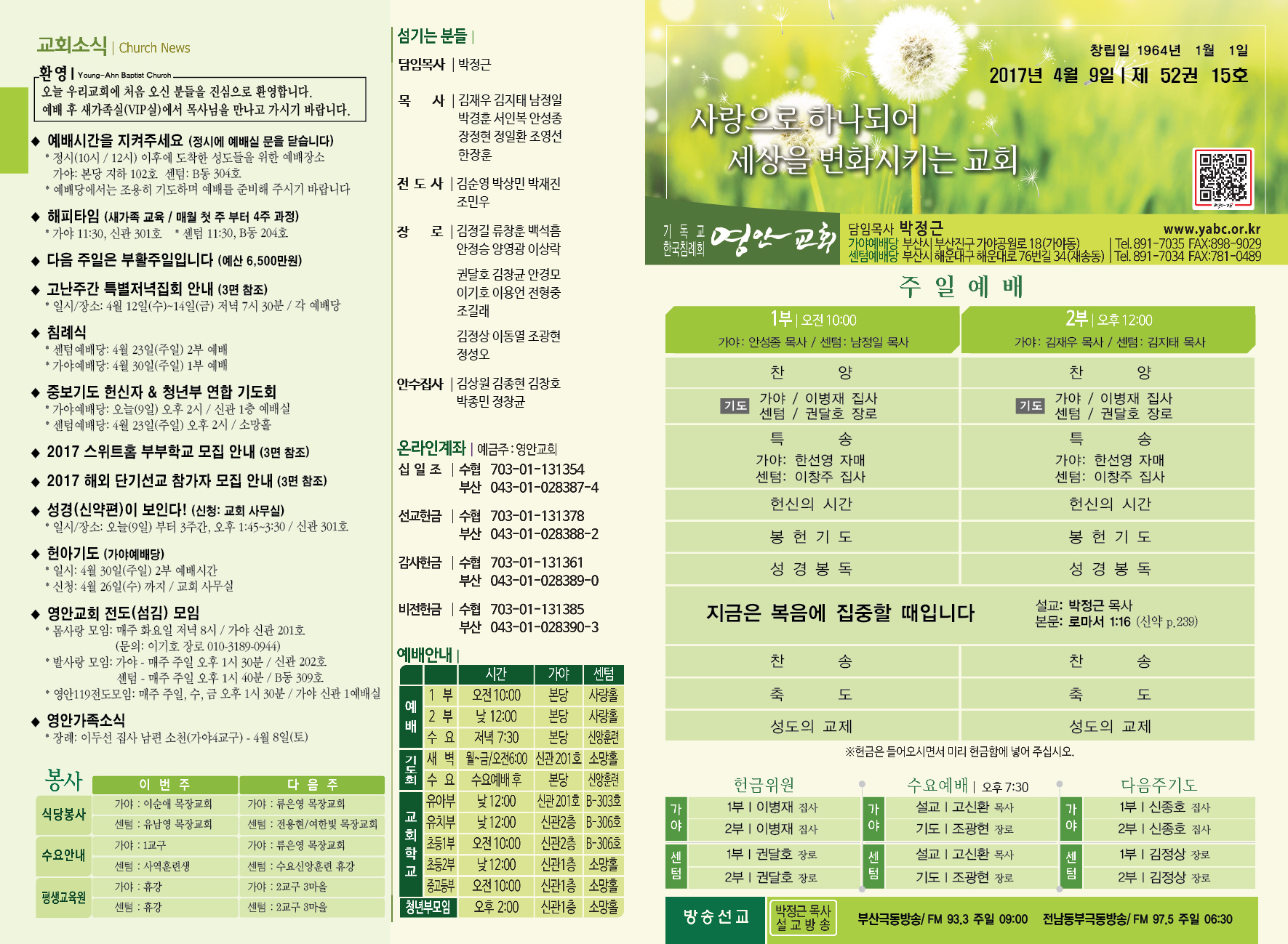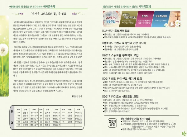 2017년 4월 9일 주보 페이지 정보 작성자 관리지기 작성일17-04-08 11:34 조회13,783회 댓글0건 관련링크 목록 본문 2017년 4월 9일 주보 댓글목록 등록된 댓글이 없습니다. 목록