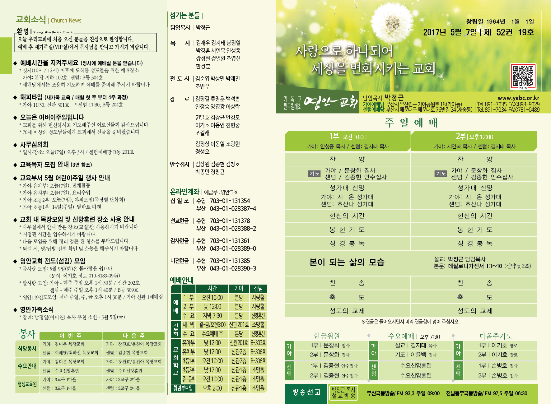 2017년 5월 7일 주보 페이지 정보 작성자 관리지기 작성일17-05-06 11:53 조회13,843회 댓글0건 관련링크 목록 본문 2017년 5월 7일 주보 댓글목록 등록된 댓글이 없습니다. 목록