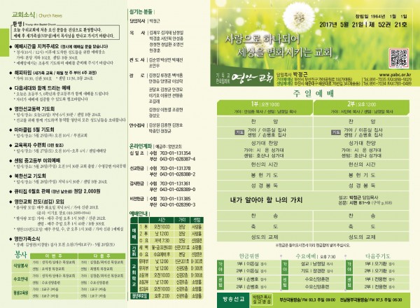 2017년 5월 21일 주보 페이지 정보 작성자 관리지기 작성일17-05-20 12:11 조회14,650회 댓글0건 관련링크 목록 본문 2017년 5월 21일 주보 댓글목록 등록된 댓글이 없습니다. 목록