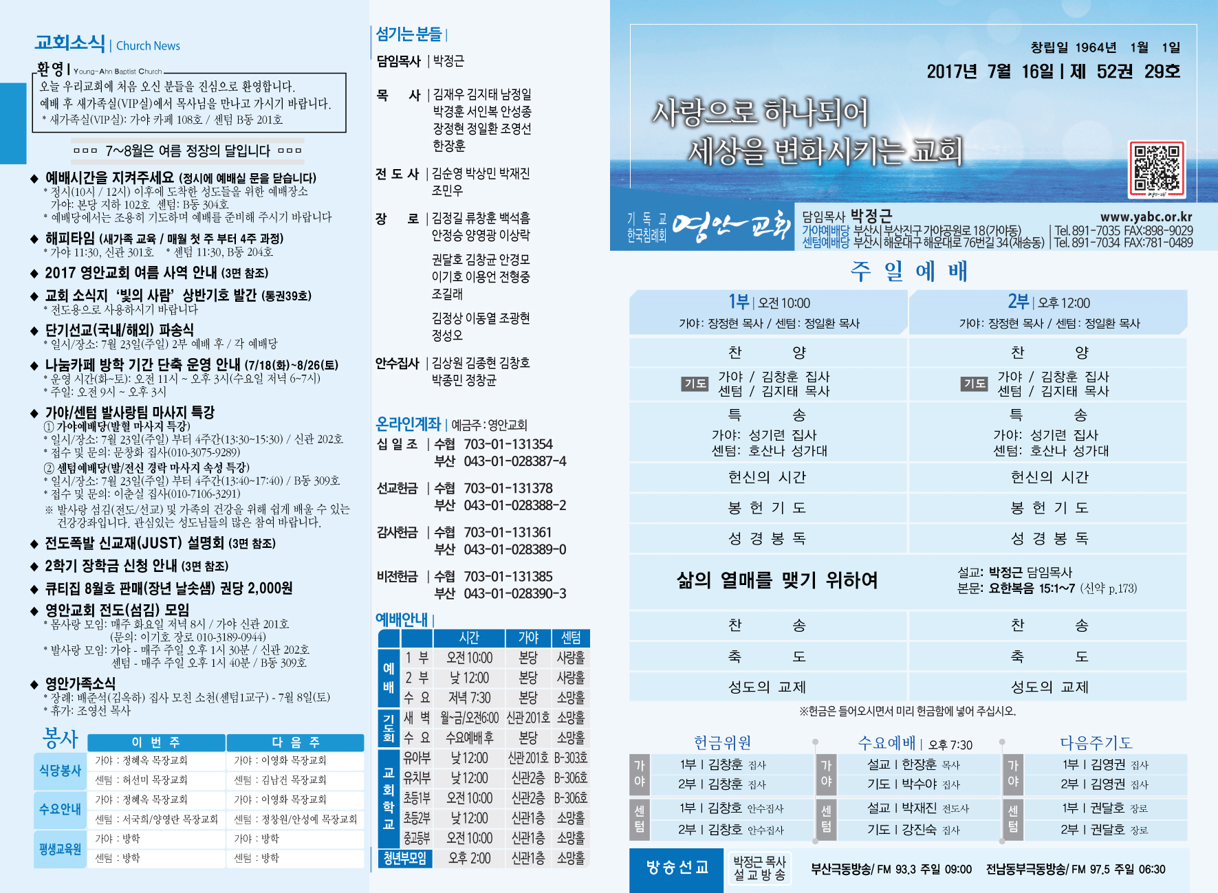2017년 7월 16일 주보 페이지 정보 작성자 관리지기 작성일17-07-15 12:34 조회14,614회 댓글0건 관련링크 목록 본문 [2017년 7월 16일 주보] 댓글목록 등록된 댓글이 없습니다. 목록