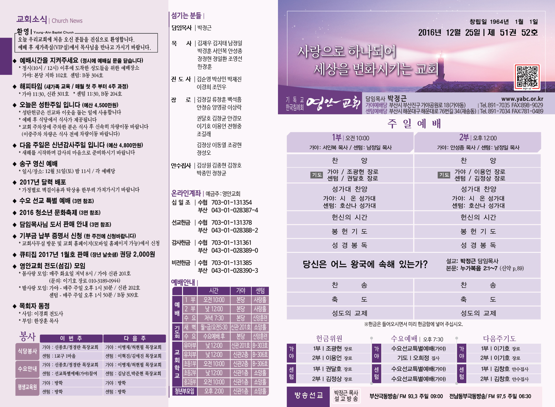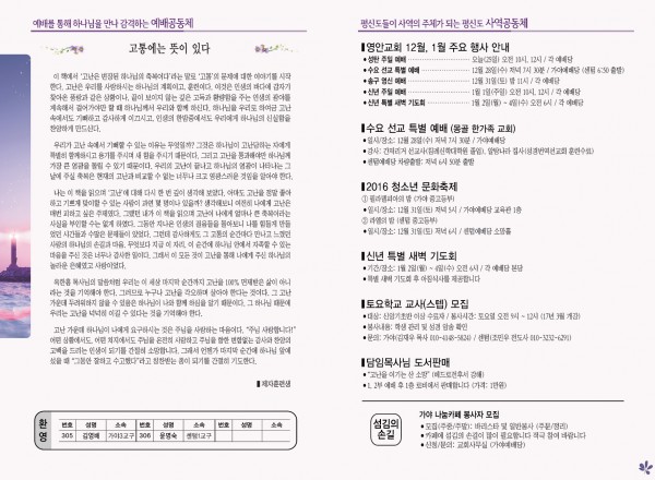 2016년 12월 25일 주보 페이지 정보 작성자 관리지기 작성일16-12-24 12:23 조회13,036회 댓글0건 관련링크 목록 본문 2016년 12월 25일 주보 댓글목록 등록된 댓글이 없습니다. 목록