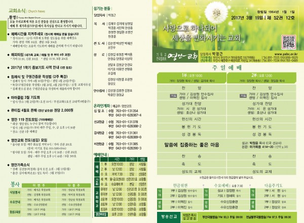 2017년 3월 19일 주보 페이지 정보 작성자 관리지기 작성일17-03-18 12:11 조회13,578회 댓글0건 관련링크 목록 본문 2017년 3월 19일 주보 댓글목록 등록된 댓글이 없습니다. 목록