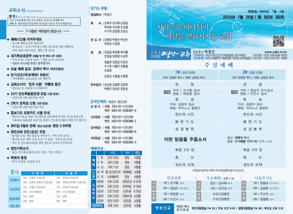 2015년 7월 26일 주보 페이지 정보 작성자 yabc 작성일15-07-25 00:00 조회9,958회 댓글0건 관련링크 목록 본문 2015년 7월 26일 주보 댓글목록 등록된 댓글이 없습니다. 목록