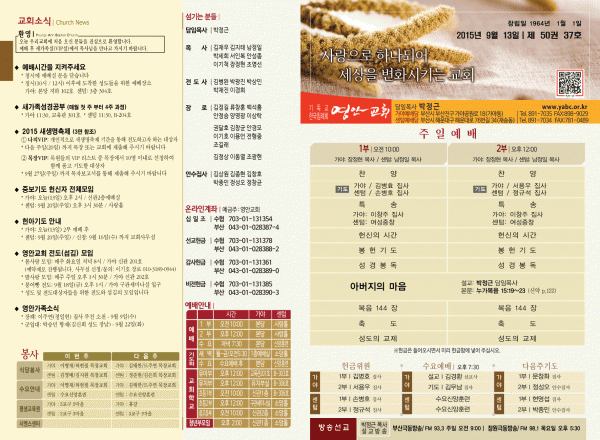 2015년 9월 13일 주보 페이지 정보 작성자 영안교회 작성일15-09-19 14:26 조회9,896회 댓글0건 관련링크 목록 본문 2015년 9월 13일 주보 댓글목록 등록된 댓글이 없습니다. 목록
