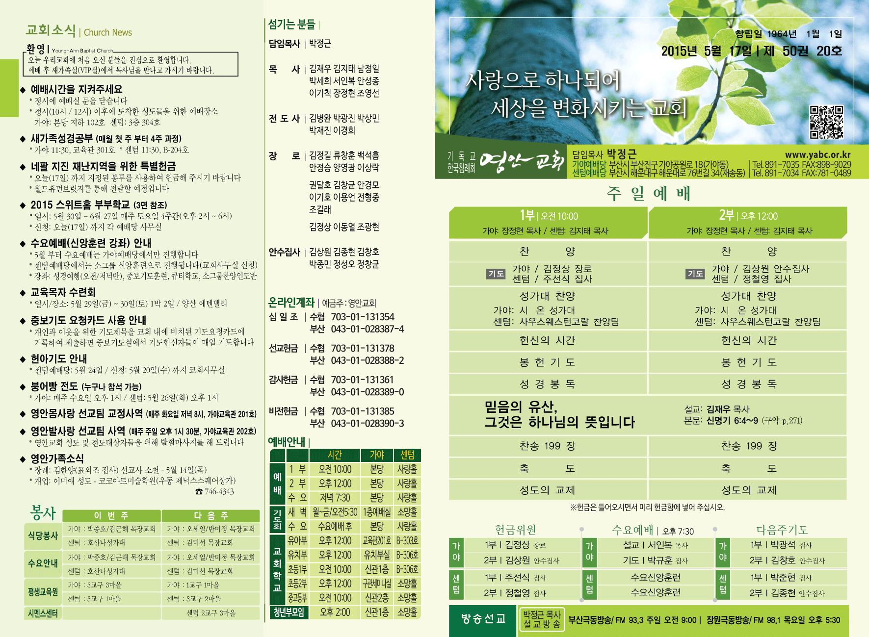2015년 5월 17일 주보 페이지 정보 작성자 yabc 작성일15-05-16 00:00 조회10,853회 댓글0건 관련링크 목록 본문 2015년 5월 17일 주보 댓글목록 등록된 댓글이 없습니다. 목록