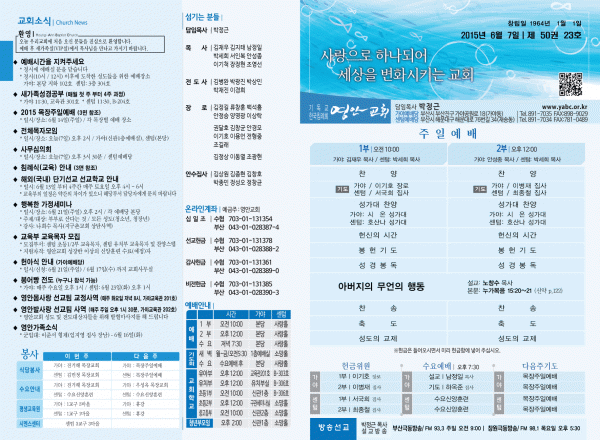 2015년 6월 7일 주보 페이지 정보 작성자 yabc 작성일15-06-05 00:00 조회10,263회 댓글0건 관련링크 목록 본문 2015년 6월 7일 주보 댓글목록 등록된 댓글이 없습니다. 목록