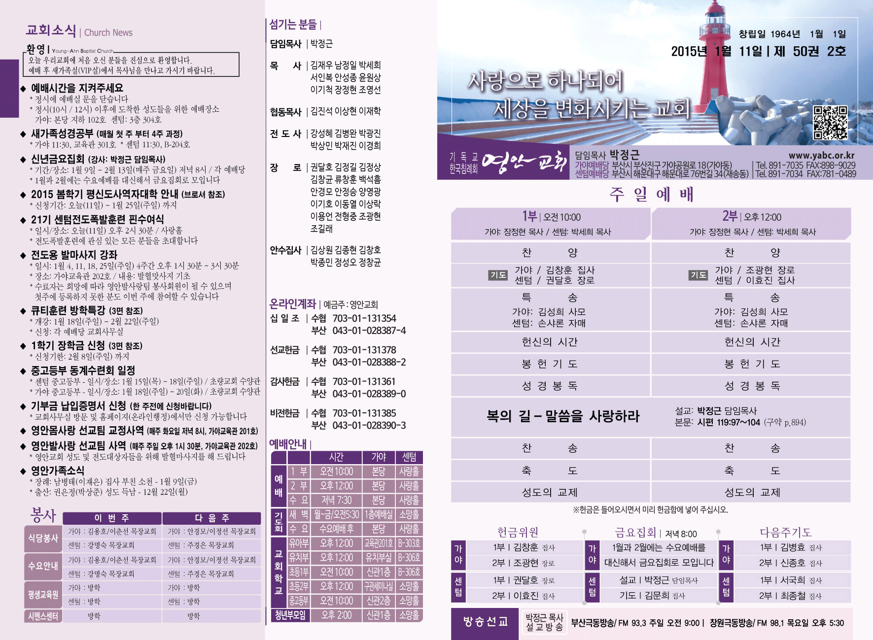 2015년 1월 11일 주보 페이지 정보 작성자 yabc 작성일15-01-10 00:00 조회9,358회 댓글0건 관련링크 목록 본문 2015년 1월 11일 주보 댓글목록 등록된 댓글이 없습니다. 목록