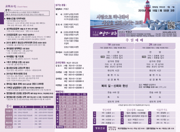 2015년 1월 18일 주보 페이지 정보 작성자 yabc 작성일15-01-17 00:00 조회10,178회 댓글0건 관련링크 목록 본문 2015년 1월 18일 주보 댓글목록 등록된 댓글이 없습니다. 목록