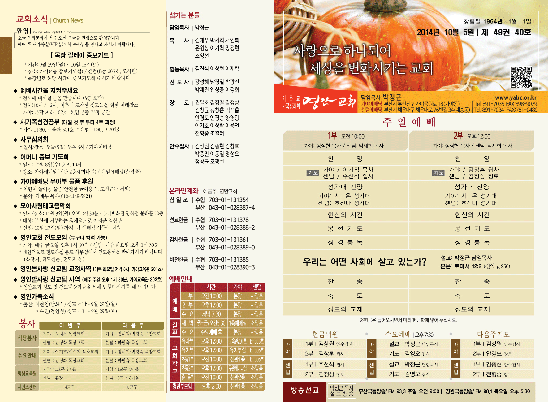 2014년 10월 5일 주보 페이지 정보 작성자 yabc 작성일14-10-04 00:00 조회10,793회 댓글0건 관련링크 목록 본문 2014년 10월 5일 주보 댓글목록 등록된 댓글이 없습니다. 목록