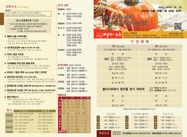 2014년 10월 26일 주보 페이지 정보 작성자 yabc 작성일14-10-25 00:00 조회10,945회 댓글0건 관련링크 목록 본문 2014년 10월 26일 주보 댓글목록 등록된 댓글이 없습니다. 목록