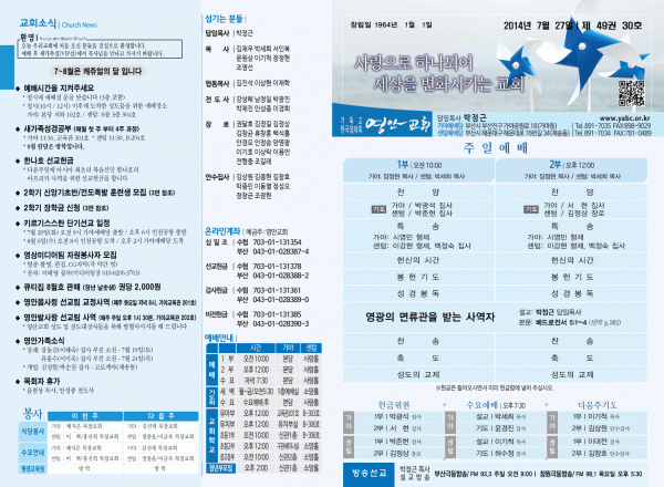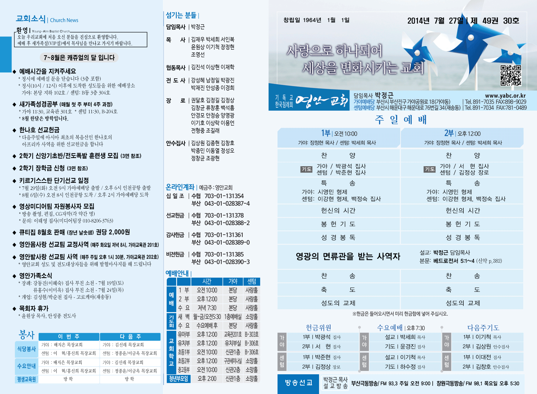 2014년 7월 27일 주보 페이지 정보 작성자 yabc 작성일14-07-26 00:00 조회12,094회 댓글0건 관련링크 목록 본문 2014년 7월 27일 주보 댓글목록 등록된 댓글이 없습니다. 목록