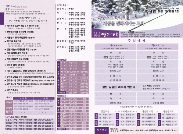 2014년 1월 26일 주보 페이지 정보 작성자 yabc 작성일14-01-25 00:00 조회10,181회 댓글0건 관련링크 목록 본문 2014년 1월 26일 주보 댓글목록 등록된 댓글이 없습니다. 목록