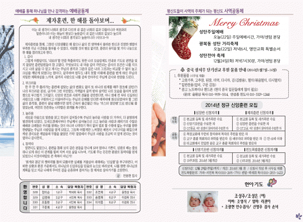 2013년 12월 22일 주보 페이지 정보 작성자 yabc 작성일13-12-21 00:00 조회12,160회 댓글0건 관련링크 목록 본문 2013년 12월 22일 주보 댓글목록 등록된 댓글이 없습니다. 목록