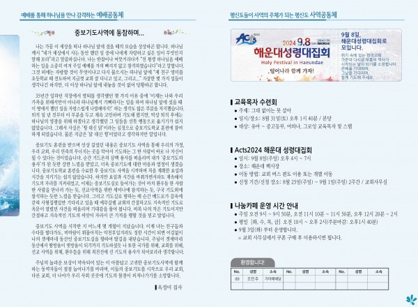 2024년 8월 25일 주보 (가야예배당) 페이지 정보 작성자 관리지기 작성일24-08-24 11:19 조회1,958회 댓글0건 관련링크 목록 본문 2024년 8월 25일 주보 (가야예배당) 댓글목록 등록된 댓글이 없습니다. 목록