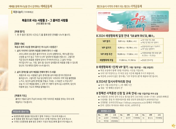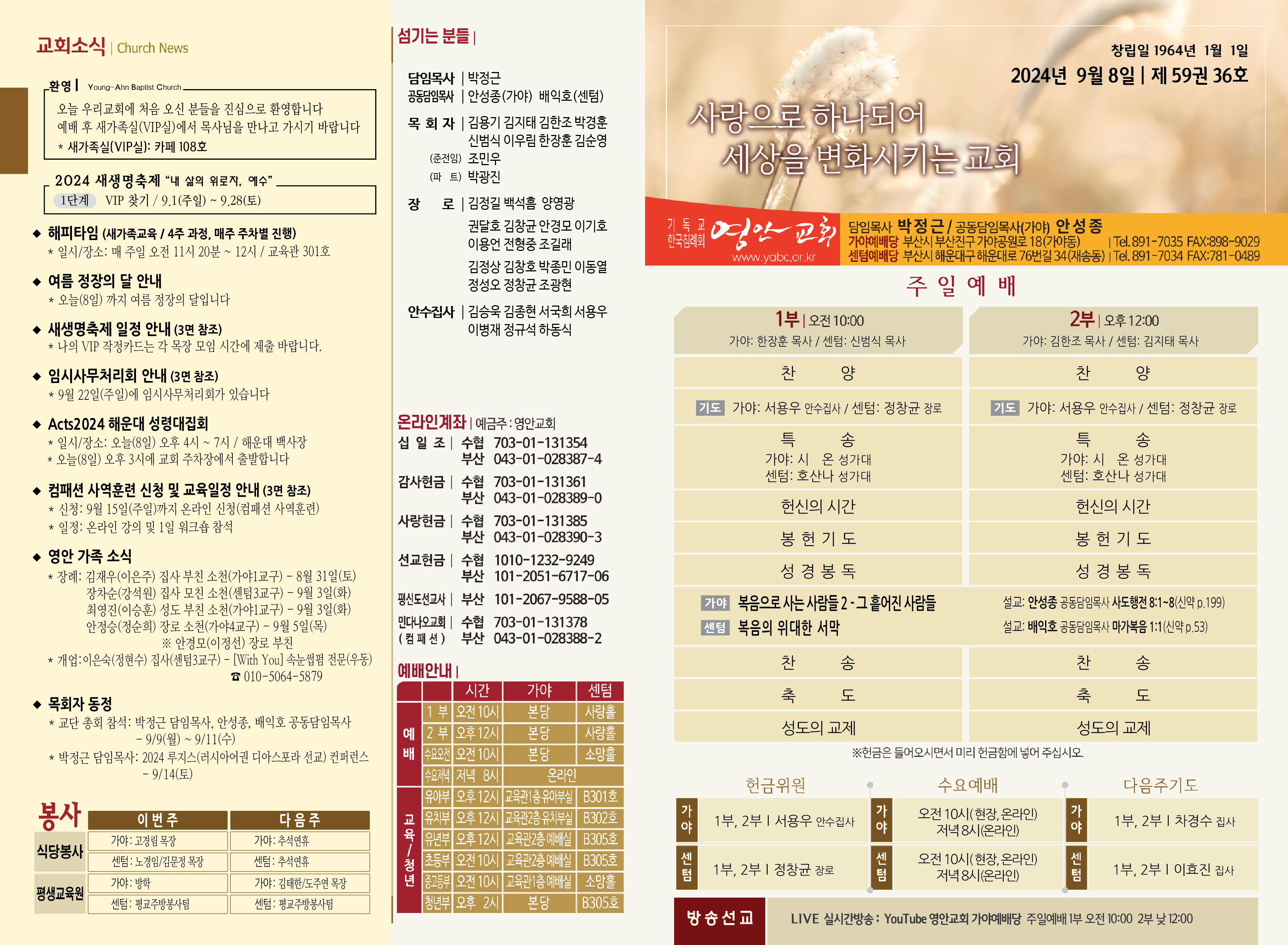 2024년 9월 8일 주보 (가야예배당) 페이지 정보 작성자 관리지기 작성일24-09-07 11:22 조회1,927회 댓글0건 관련링크 목록 본문 2024년 9월 8일 주보 (가야예배당) 댓글목록 등록된 댓글이 없습니다. 목록