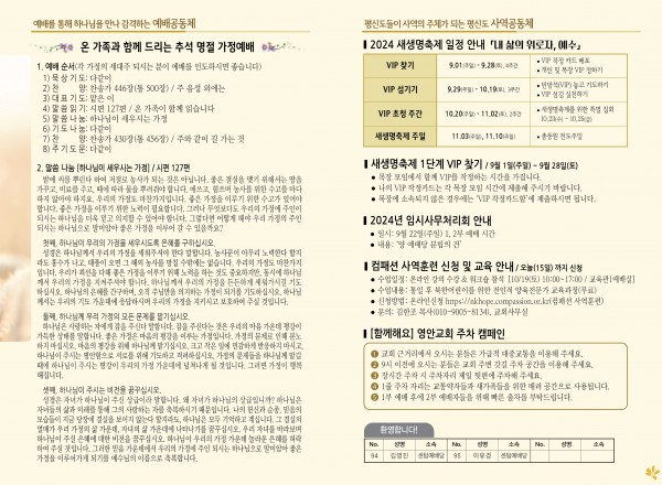 2024년 9월 15일 주보 (가야예배당) 페이지 정보 작성자 관리지기 작성일24-09-14 11:07 조회2,036회 댓글0건 관련링크 목록 본문 2024년 9월 15일 주보 (가야예배당) 댓글목록 등록된 댓글이 없습니다. 목록