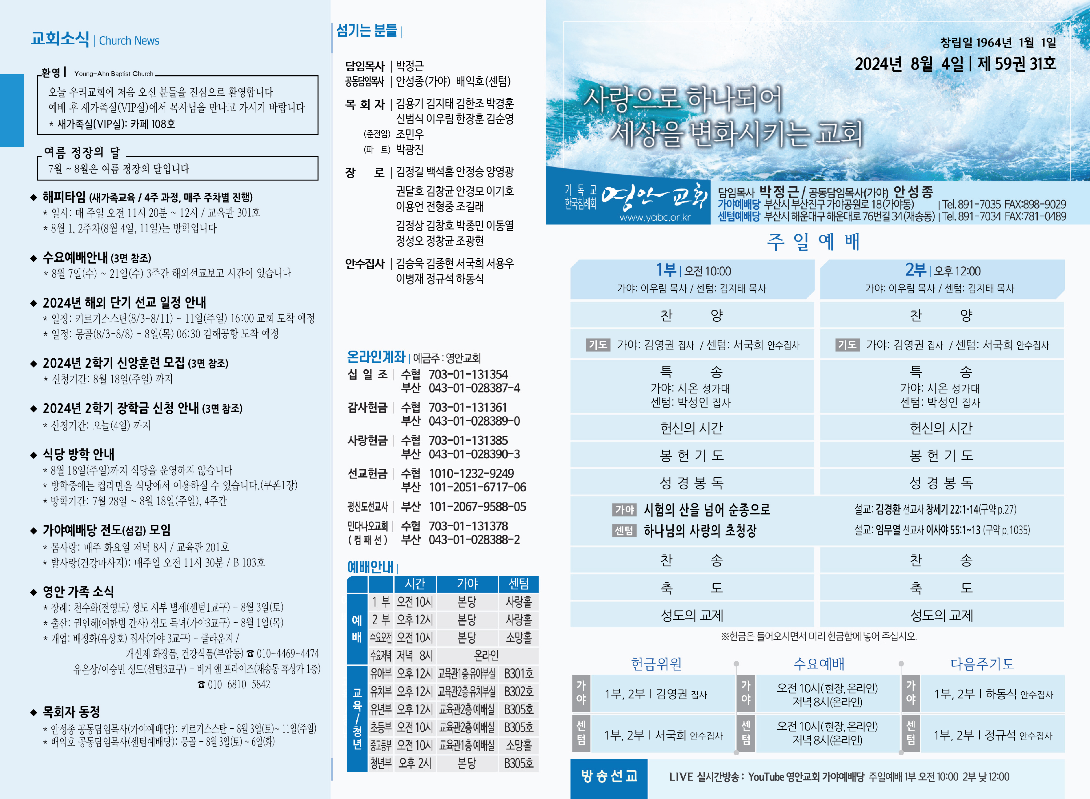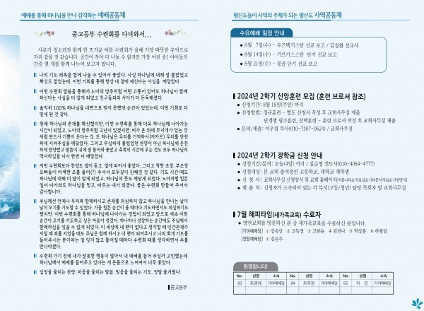 2024년 8월 4일 주보 (가야예배당) 페이지 정보 작성자 관리지기 작성일24-08-03 11:32 조회2,129회 댓글0건 관련링크 목록 본문 * 2024년 8월 4일 주보 (가야예배당) 댓글목록 등록된 댓글이 없습니다. 목록