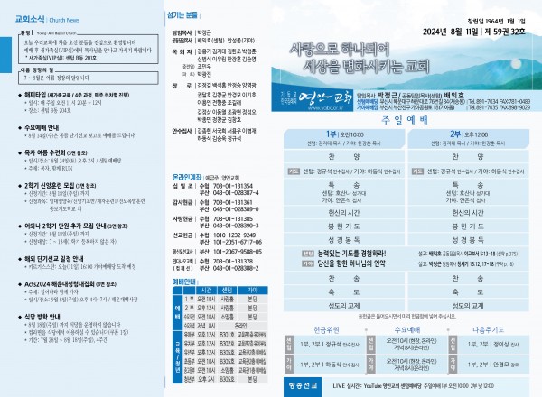 2024년 8월 11일 주보 (센텀예배당) 페이지 정보 작성자 관리지기 작성일24-08-10 10:52 조회1,868회 댓글0건 관련링크 목록 본문 2024년 8월 11일 주보 (센텀예배당) 댓글목록 등록된 댓글이 없습니다. 목록